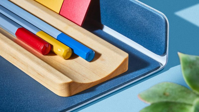 The Matte Studio Pad comes in Black and Navy for a more minimalist vibe. The natural linoleum surface feels cool and soft, provides a solid base for handwriting, and easily wipes clean. It shares the same sturdy aluminum backing and handy hardwood tray.
