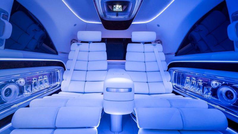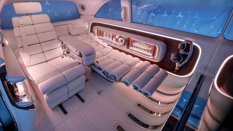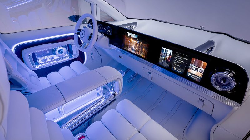 First-class lounge seats recline to flatbeds, while digital glass partitions and a fully immersive infotainment system personalize your ride with seven experiential modes, from “Relax” to “Shopping.” With its Superscreen dash, customizable ambient lighting, and switchable glass tech throughout, the Vision V is as smart as it is opulent. This concept doesn’t just raise the bar—it reinvents it, staking Mercedes’ claim on the future of ultra-luxe, fully electric MPVs.