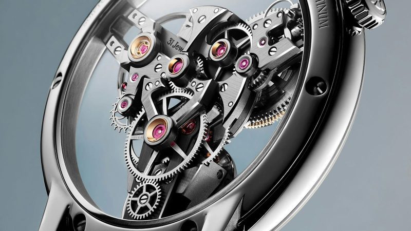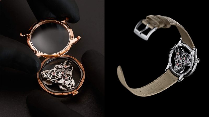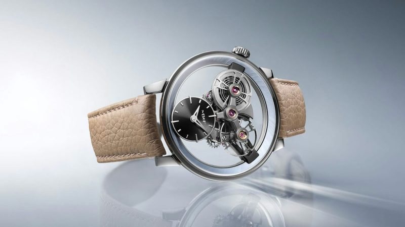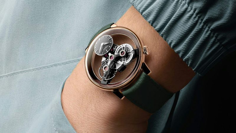 A time display tilts at 6 o’clock, while the barrel and oversized balance wheel take their places in symmetrical harmony. There’s no bezel. No dramatic bridges. Just pure design poetry. Even the movement’s 72-hour reserve and 2.5Hz beat rate play second fiddle to its architectural grace.