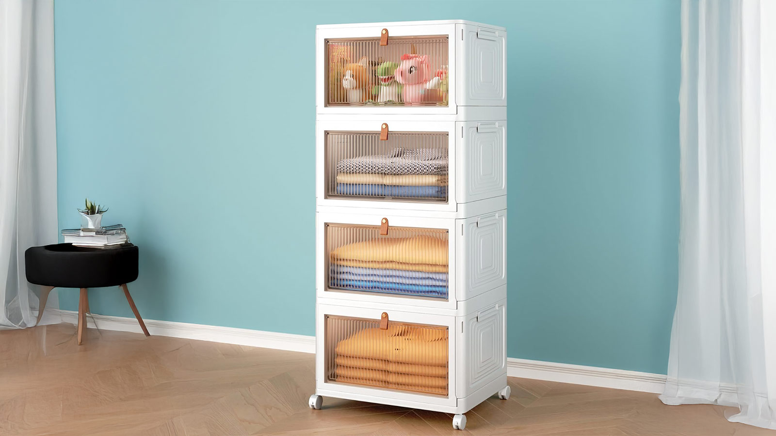 Collapsible storage bins are a smart, space-saving solution that brings versatility and mobility to any room. Easy to assemble without tools, these bins fold flat when not in use, freeing up valuable space in your home, garage, or car. Designed to stack securely, each layer features grooves and clasps that lock in place for stable, vertical storage—ideal for organizing everything from clothes and shoes to pet food and pantry items. Four rotating wheels at the base make it easy to reposition the bins, and two lockable wheels ensure your setup stays put when needed. Whether you’re maximizing closet space, organizing a laundry room, or streamlining your car trunk, these multifunctional bins offer durable, portable storage that adapts to your needs.