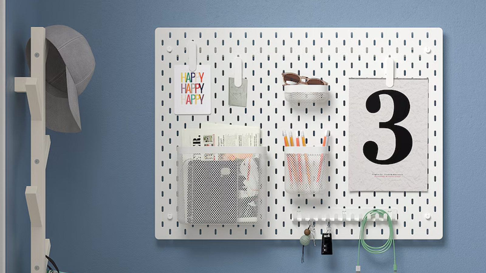 Wall-mounted hooks and pegboards are game changers for keeping your space clutter-free without taking up valuable floor space. The SKÅDIS series offers a customizable solution that adapts to your lifestyle, whether you’re organizing tools in the garage, home office gadgets, or bathroom accessories. Install a single pegboard or link multiple panels together for a seamless, personalized setup. Use the system on a wall or as a divider attached to your desk for double-sided storage. With a wide range of accessories, you can easily tailor the layout, from stationery and tech gear to kitchen tools and toiletries. Clean, accessible, and endlessly flexible, SKÅDIS pegboards make sure your essentials are always within reach and never in the way.