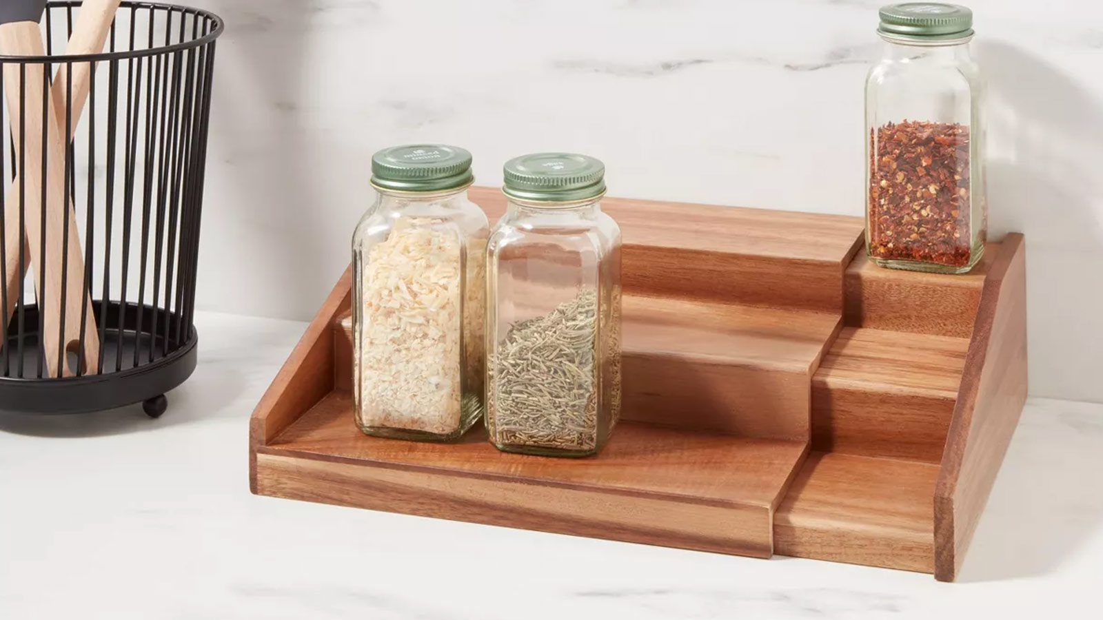 Tiered shelf organizers are a game changer for cutting through kitchen chaos, and the Wood 3-Tier Expandable Spice Rack from Threshold™ does it with both style and function. Designed with three tiers to make all your spices and condiments easy to see and grab, this rack takes the guesswork out of food prep. The expandable width allows you to customize the fit based on your cabinet or countertop space, which is perfect for growing collections. Crafted from natural wood, it adds a touch of farmhouse-inspired charm to any kitchen setup while blending effortlessly with various interior styles. It’s a simple, smart way to bring visual order and everyday convenience to your culinary zone.
