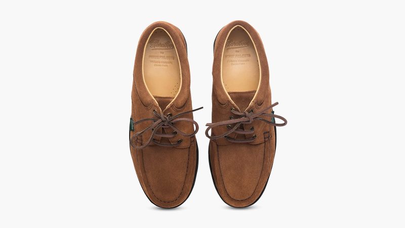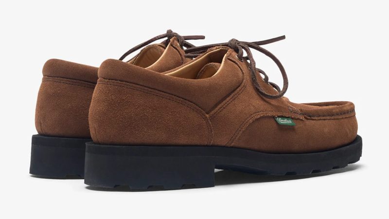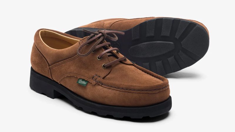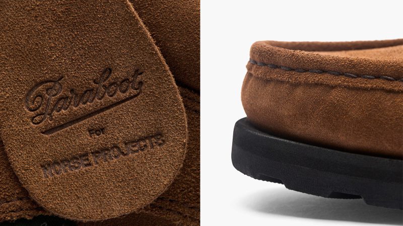 Drawing inspiration from the Kanonbådsskure, the historic gunboat hangars in Copenhagen’s Holmen district, the Thiers by Paraboot for Norse Projects shoes blend iconic footwear design with a contemporary twist. The hangars, which were constructed in 1820 to house vessels for the Royal Danish Navy, have since been converted into the architecture studios for Norse Projects.