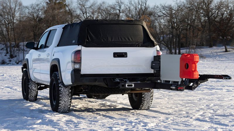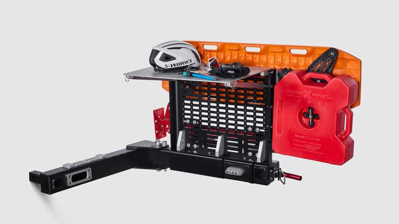 Created to transform the functionality of the RakAttach swing-away hitch mount, the RakAttach Accessory Panel System comes fitted with three vital components for gear hauling. The APS main panel, constructed from a MOLLE board, allows the device to be bolted directly to a RakAttach for a wide selection of accessories, including traction boards and Jerry cans.