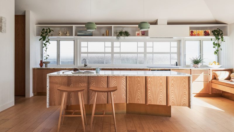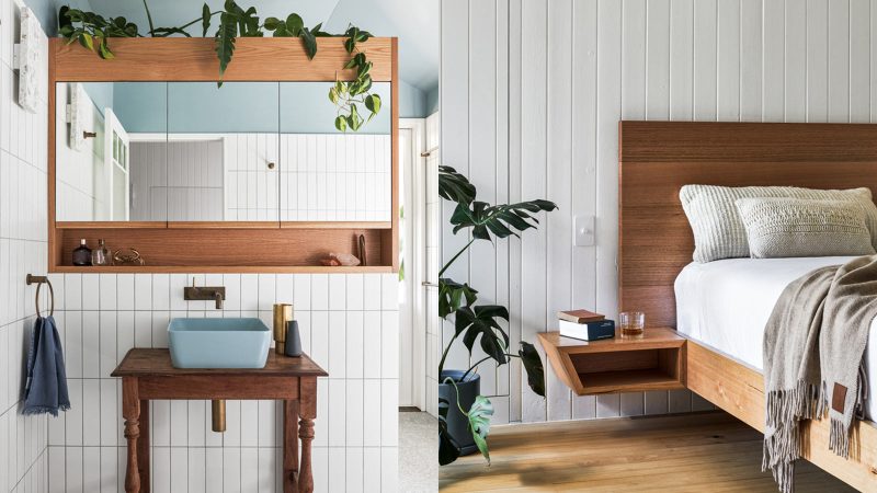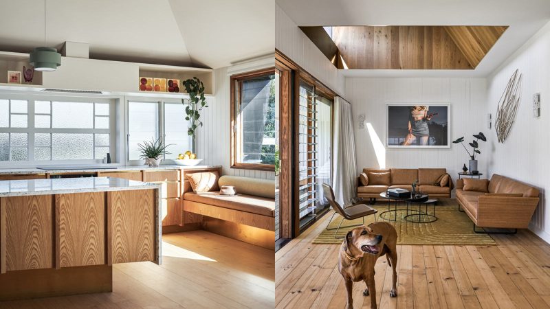 After life’s twists rerouted the project’s original purpose, the house became a deeply personal refuge for its owner and two children. Guided by a metaphor of rebirth, the renovation took a remix approach: original casement windows now frame the kitchen splashback, teak decking warms the bedroom walls, and salvaged materials were reinvented with puzzle-like precision.