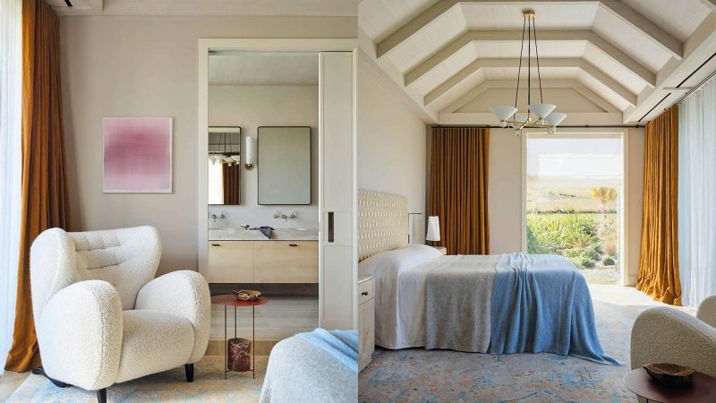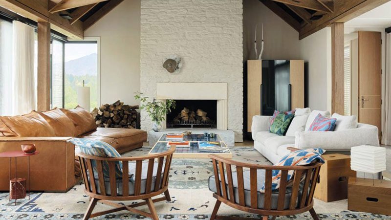 Built for a family with four active boys, the design emphasizes durability and comfort while capturing the surrounding landscape’s essence. The house’s architecture, with its steel, Schist stone, and timber weatherboard structure, provides a robust foundation. At the same time, the interior reflects the surrounding natural hues—blues, saffrons, and silvery greys—drawing inspiration from the sky, foliage, and rocky terrain.