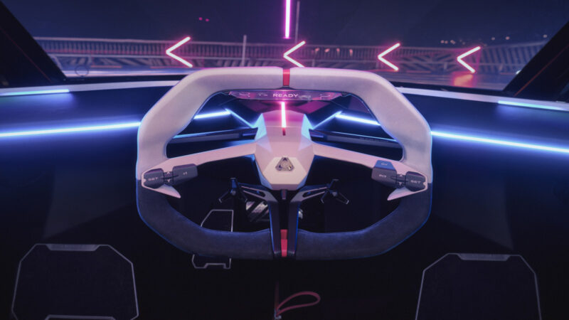 Inside, the Alpine A290_β features a McLaren F1-styled center seating configuration with the driver positioned in the middle of the cabin. Passengers are cradled in carbon fiber race-spec bucket seats. The car’s dashboard is reportedly derived from a Formula 1 car’s nose, resulting in an arrow shape design. Moreover, the car’s angular steering wheel is inspired by the 2023 LMP2 A470 and F1 A523 race cars.