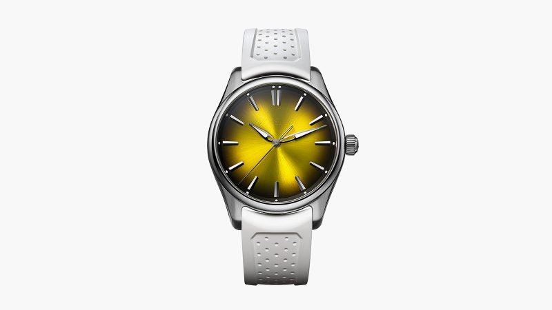 H. Moser & Cie. dropped the boldest breakfast flex in haute horology with the release of the Pioneer Centre Seconds Sunny-Side Up. True to the Swiss brand’s cheeky yet serious spirit, this egg-inspired timepiece delivers a perfect fusion of craftsmanship and whimsy. The radiant yellow fumé dial mimics the golden center of a sunny-side-up egg, set inside a polished 40mm stainless steel case. Paired with a crisp white rubber strap and a screw-in crown marked with Moser’s signature “M,” this piece is as playful as it is precise.