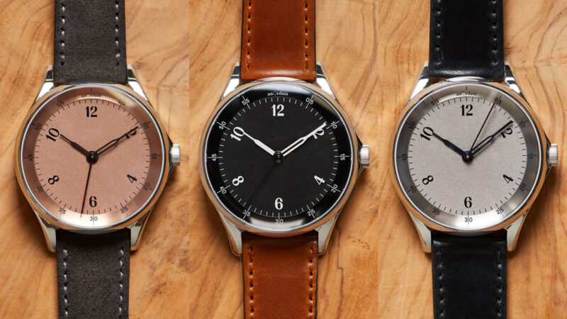 Scottish watchmaker, anOrdain has collaborated with Worn & Wound to unveil the Model 1 Precious Metal Series. A trio of watches based on anOrdain’s Model 1 design, each features a different precious metal coating on the dial and complementary accents. Known for their in-house enamel dials, in 2020 when the world shut down, anOrdain could not practice their signature craft, so they designed a series of watches that celebrated their unique design language, sans-enamel. Working with a high-end dial maker in Germany, anOrdain created three different dials with precious metal coatings, finished to the highest degree with sandblasting and brushing for contrasting textures. Available in Black Rhodium, White Gold, and Rose Gold, they epitomize anOrdain’s vision of a classic and minimal, contemporary watch.