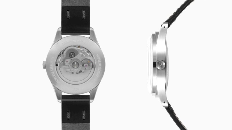 The Paulin Neo is a three-hand watch (hour, minute, and central seconds) with a date window at 3 o’clock. Its self-winding movement can be admired through the transparent case back, or a metal case back is also available. The watch is topped with a Hesalite box-crystal and is waterproof up to 5 ATM. Batch One of the Neo has already sold out, but Batch Two can be pre-ordered now and will be shipped by the end of November, just in time for the holidays.