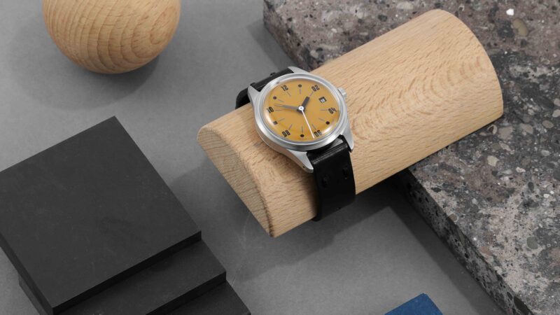 Glasgow watchmakers, Paulin, in partnership with anOrdain present their Scottish-made mechanical watch, the Neo. The Neo is bold, funky, and just plain fun. It’s housed in a 38mm steel case with drilled lugs to enable strap changes. And the watch is powered by the robust NH35A movement by Seiko. The Neo features a handsome, anodized aluminum dial, manufactured in Scotland and hand-dyed by artist Helen Swan in Glasgow, a process that hasn’t been used on watch dials before. The aluminum dial comes in three colorways including butterscotch yellow, sky blue and white.