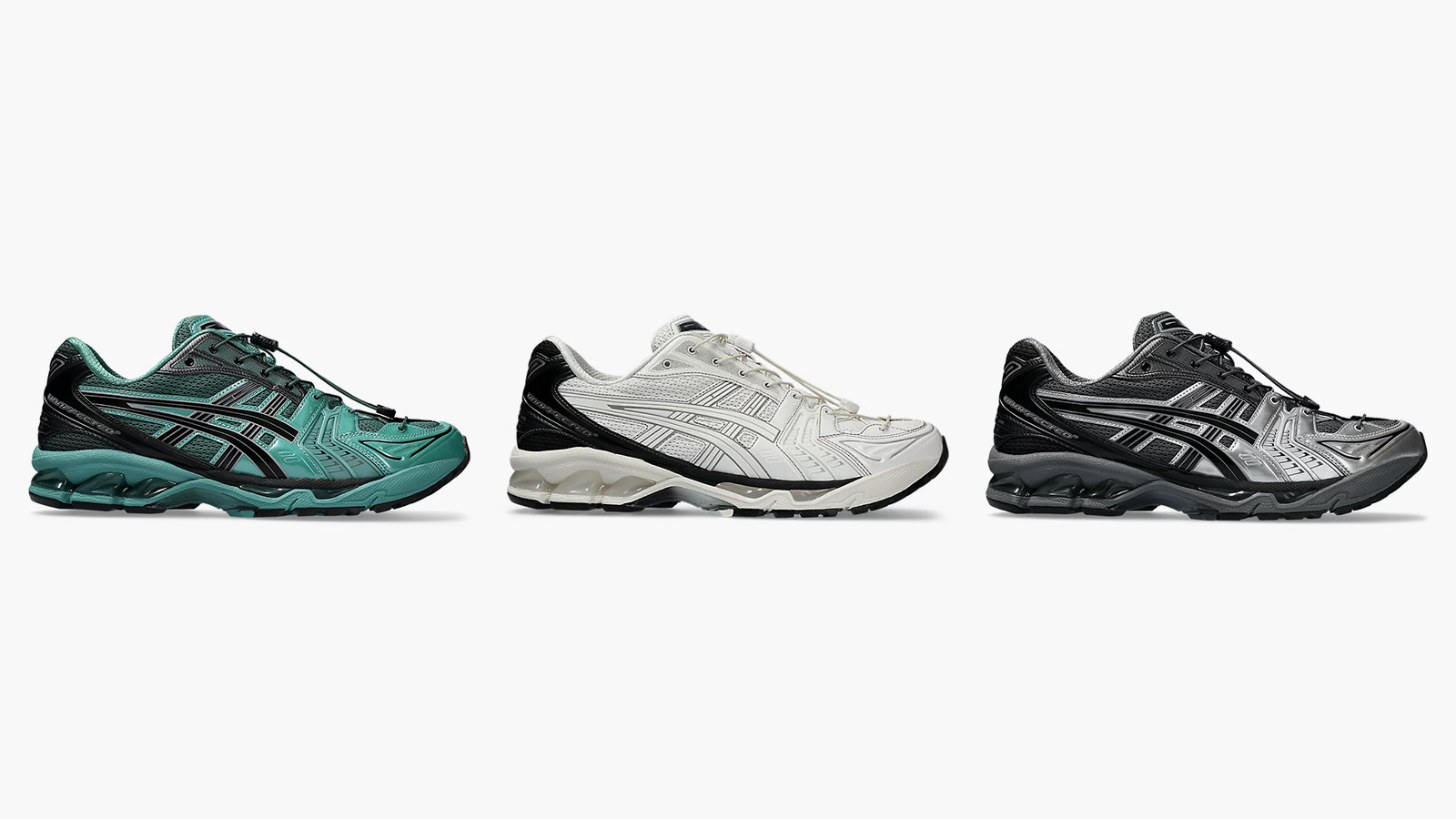 The UNAFFECTED x ASICS GEL-KAYANO 14 collection offers a trio of colorways, each with its own distinct appeal. Sneaker enthusiasts can choose from “Dark Shadow/Pure Silver,” “Bright White/Jet Black,” and “Posy Green/Bottle Green.” These color combinations are designed to catch the eye without going overboard, making them versatile options for a variety of outfits and occasions.