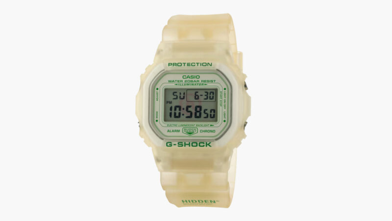 By fusing the classic aesthetics of the DW5600 with HIDDEN NY’s emblematic white and green hues, the DW5600HDN227 emerges as a sleek, fashionable accessory that resonates with enthusiasts of both brands. This collaboration is a visual embodiment of G-SHOCK’s 40 years of durability and resilience in the watch industry, intertwined with HIDDEN NY’s “Past, Present, and Future” philosophy. As HIDDEN has evolved into an esteemed streetwear brand, this collaboration stands as a testament to the enduring influence of both G-SHOCK and HIDDEN NY.