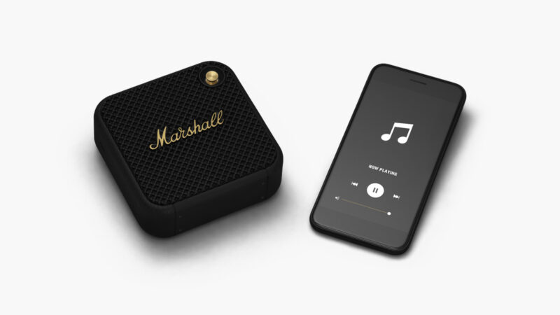 Marshall has unveiled the new, hand-sized Marshall Willen portable speaker. This little powerhouse features one two-inch full-range driver with a 100-20,000 Hz frequency range and two passive radiators. The Willen boasts the iconic rugged Marshall design, an IP67 dust and water-resistance rating, and a mounting strap that makes this portable speaker road-ready. The strap also makes this multi-purpose speaker flexible to stand up, lay down, strap to an object, or hang. What’s more, there is a built-in microphone with a front-mounted control knob for hands-free chat. If that’s not enough, the Willen also delivers the company’s commitment to a more sustainable approach.