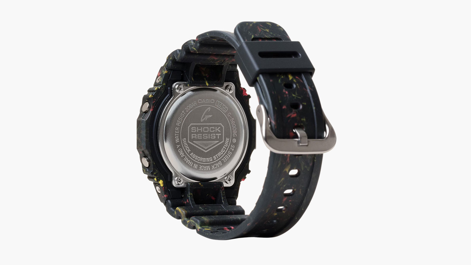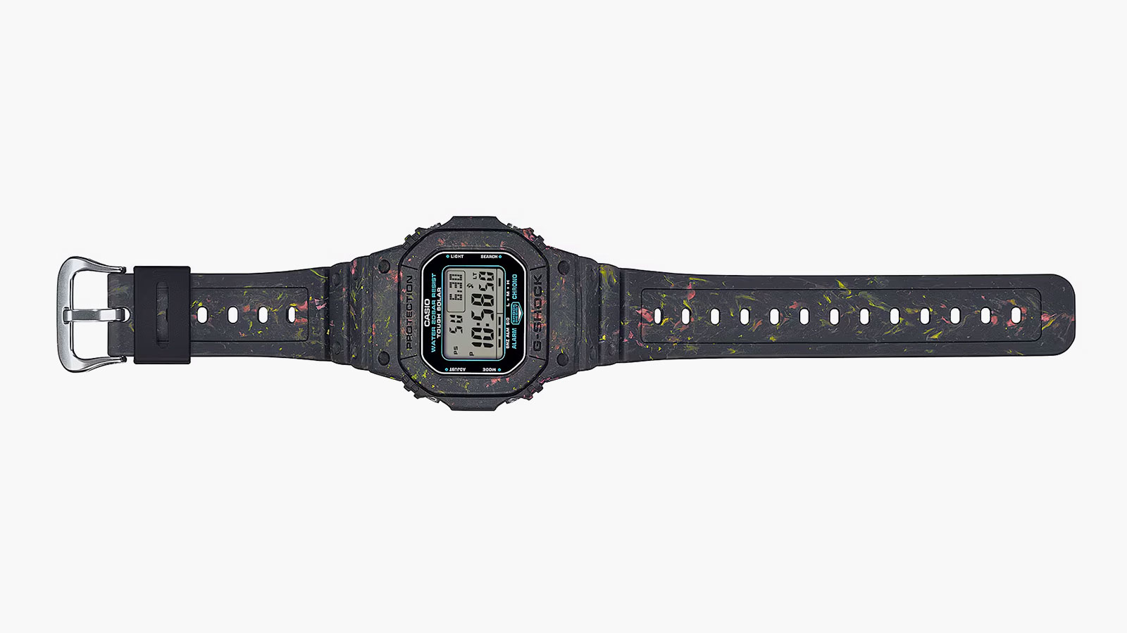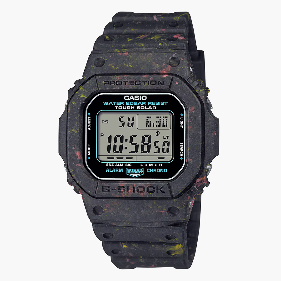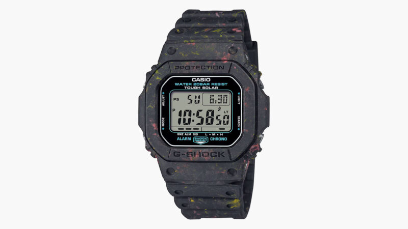 In anticipation of Earth Day, G-SHOCK has revealed its latest creation: the G5600BG-1, a limited-edition timepiece dedicated to environmental protection. This release underscores the brand’s commitment to sustainability without compromising on style. Crafted with recycled resin from residual scraps in CASIO’s watch production, the G5600BG-1 features a distinctive multicolored pattern on its bezel and band, showcasing red, matte black, and yellow shades.