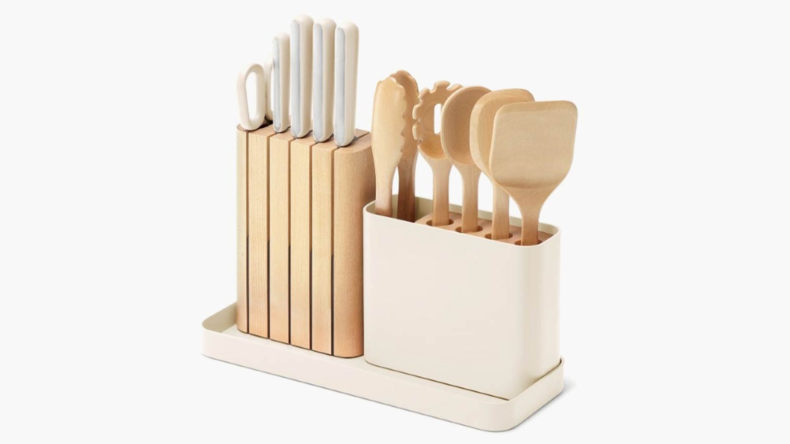 The Caraway Knife & Utensil Set is a home chef’s dream, combining style and practicality in one cohesive package. This collection features four premium knives crafted from German stainless steel and essential cooking utensils, ensuring precision and ease in every culinary task. The knives come with a sleek magnetic storage block, while the utensils include a handy organizer for a clutter-free kitchen. Available in Caraway’s signature range of modern, earthy colors, this set is perfect for the chef who values both function and aesthetic appeal.