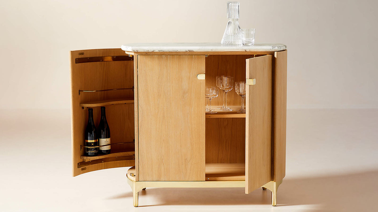 CB2 Claude Marble and Oak Wood Bar Cabinet by goop